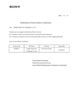 SONY綠色伙伴證書